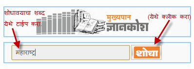 संकेतस्थळाच्या होम पेज वर डावीकडे सर्वात वर संदर्भशोधाची व्यवस्था केली आहे. खालील चित्रात महाराष्ट्र हा शब्द शोधताना दिसत आहेः