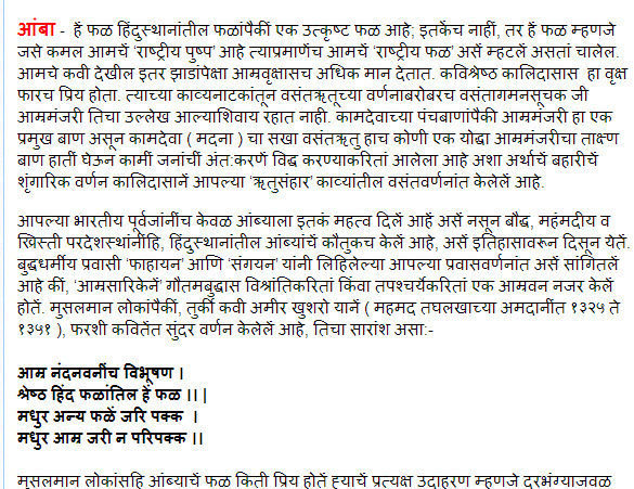 वरील आकृतीत दाखविल्यानुसार 'आंबा' ह्या लेखनोंदीवर क्लीक करताच ती लेखनोंद आपल्यासमोर खालीलप्रमाणे दिसू लागेल.